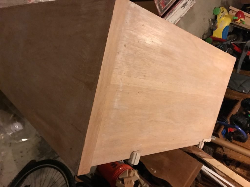 So after all that fun stuff we got to sand and sand and sand some more! This project of course couldn’t be complete with out it’s share of minor fails. First I was trying to get the top layer of veneer off the top of the dresser and ended up saying “forget it” and sanded it smooth. Another hiccup was that I thought I could peel off the top maybe 1/2 inch of wood and reveal the beautiful wood that lay beneath… I called over my husband to show him this great discovery when mid show and tell I discovered that I was actually pulling up the entire top. Stop! EEk! Way to go!