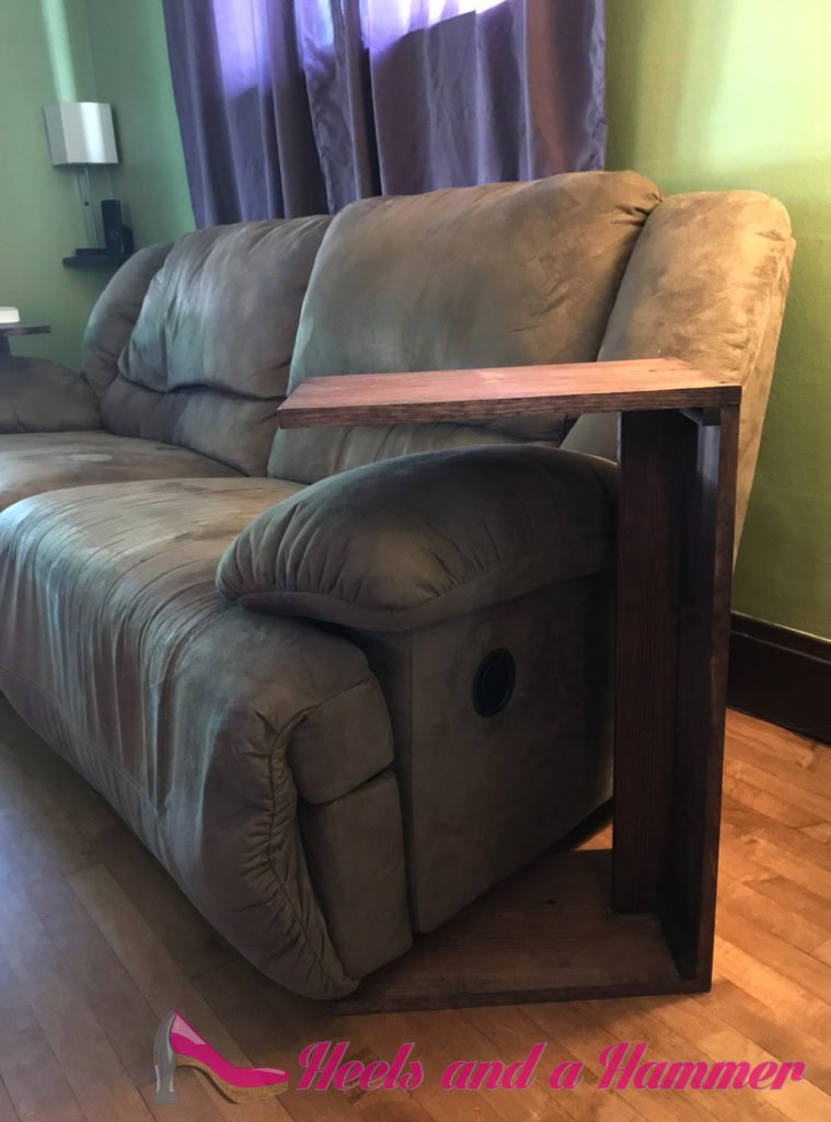 First I measured the couch that these tables would be used with and came up with my plans from there. Next, I purchased two, 1′ x 8′ x 1″ piece of Appearance Board from Homedepot. This size allows to only have to do the horizontal cut allowing for the end piece to be 1′ wide and in the long run less work and less sanding!